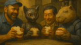 スチール猫(突然、Mr.シュガーに詰め寄りながら) 「Mr.シュガー!お前、物証がないのに『大丈夫』って言うのかにゃ!?お前がやってんのは『安心料のツケ払い』だにゃ!『誰かから聞いた』って、それ『夢の中で聞いた』のと同じだにゃ!」