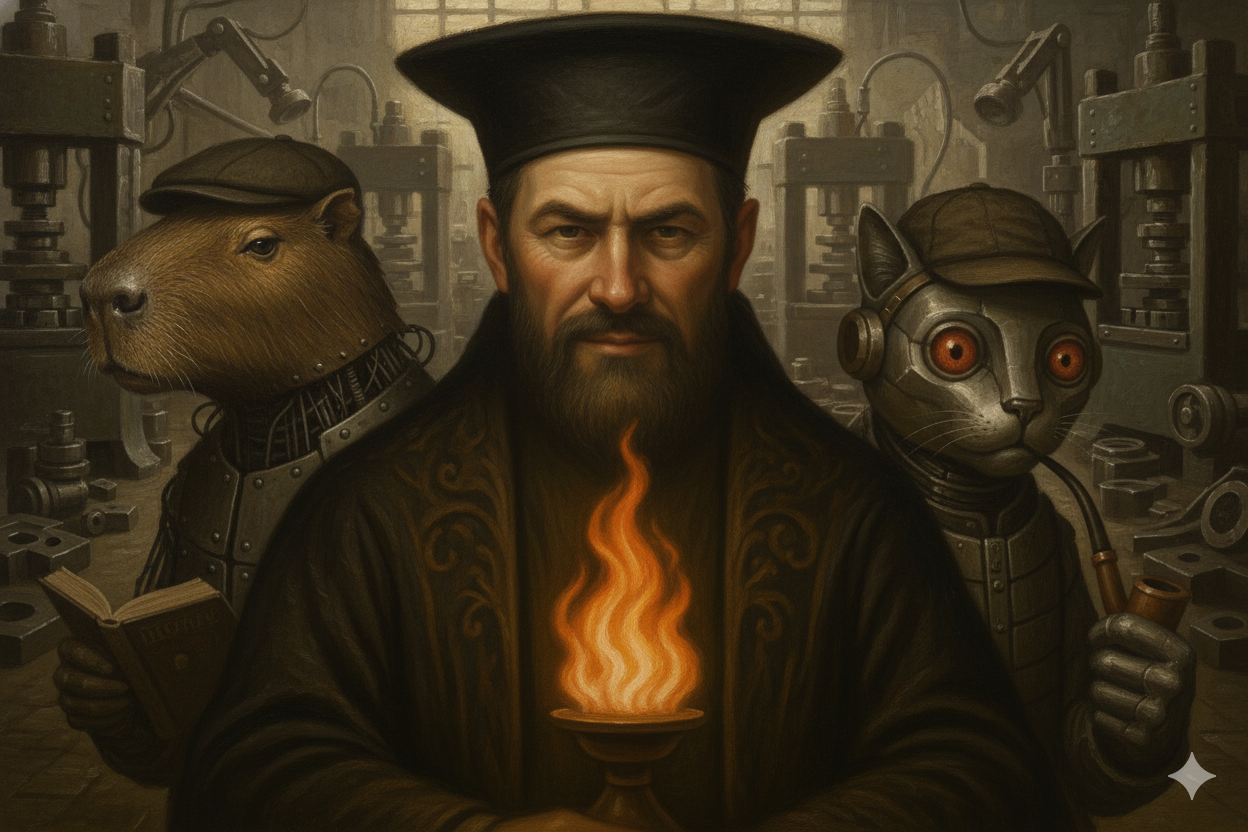 スチール猫「やっとスマホの画面から目を上げたにゃ……文明開化だ」
