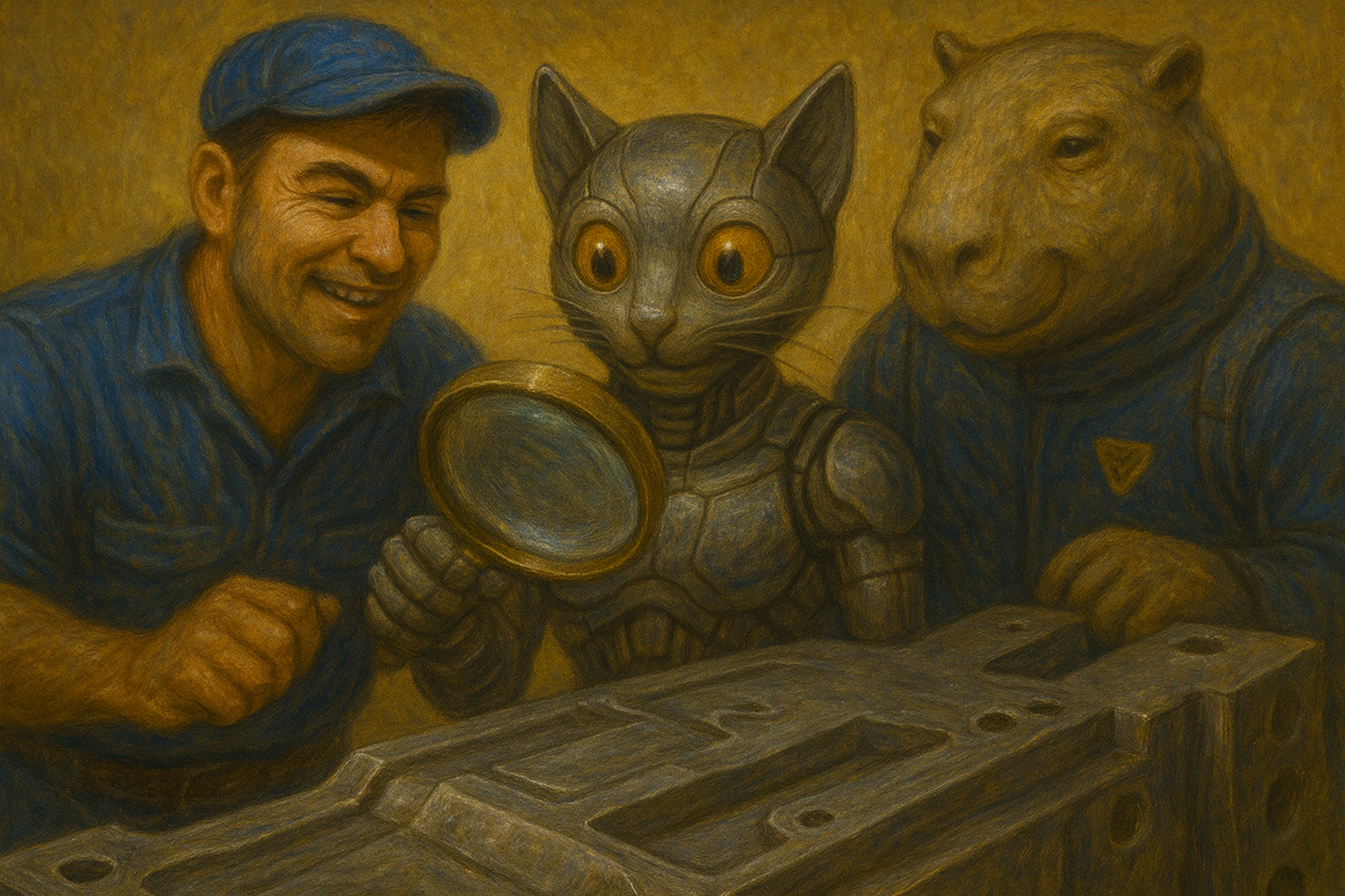 ナレーション(沈黙の風の中で) ――あの日。アルパウト社とニソー社の二重クレームは、アストロ工業の空気を一変させた。「シューッ」。いつも聞こえていた、あのエアブローの音が止んだ。静寂。だがその静けさは、反省ではなく恐怖の沈黙だった。誰も動かない。誰も話さない。金型たちは息を潜め、ただ一人――非凡な技術者・ケニだけが動いていた。