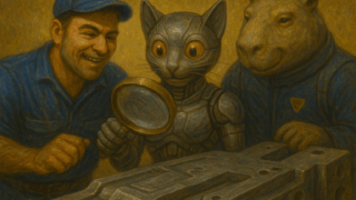 投稿 第1話 微細カスの正体を暴け──現場三人衆の記録 【ゼロ・カス道の幕開け】―非凡ケニとスチール猫(猫翔)、そしてクール参謀トワの現場漫才録・第一話 超・超・超リアル完全版―第一幕:一本の電話が工場を揺らした昼下がりの工場は、いつも通りプレス機の打音が響いていた。ギシン、ガシャン、ギシン、ガ... 2025.10.03 投稿経験談